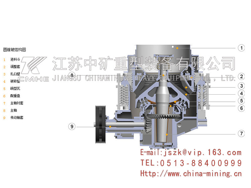圓錐式破碎機(jī)廣泛用于礦山行業(yè)、冶金行業(yè)、建筑行業(yè)、筑路行業(yè)、化學(xué)行業(yè)及硅酸鹽行業(yè),適用于破碎堅硬與中硬礦石及巖石,如鐵礦石、石灰石、銅礦石、石英、花崗巖、砂巖等。圓錐破碎機(jī)具有破碎力大、效率高、處理量高、動作成本低、調(diào)整方便、使用經(jīng)濟(jì)等特點。由于零件選材與結(jié)構(gòu)設(shè)計合理,故使用壽命長,而破碎產(chǎn)品的粒度均勻,減少了循環(huán)負(fù)荷,在中、大規(guī)格破碎機(jī)中,采用了液壓清腔系統(tǒng),減少了停機(jī)時間,且每種規(guī)格的破碎機(jī)腔型多,用戶可根據(jù)不同的需要,選擇不同的腔型,以更好的適應(yīng)用戶需要。本機(jī)密封采用潤滑脂密封,避免了給水及排水系統(tǒng)易堵塞的弊病及水油易混合的缺陷,彈簧保險系統(tǒng)是過載保護(hù)裝置,可合異物、鐵塊通過破碎腔而不危害破碎機(jī)。
