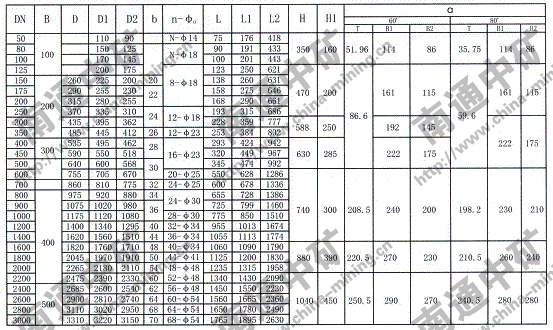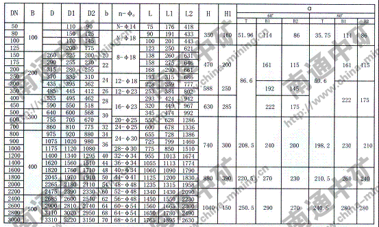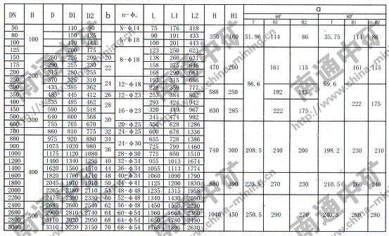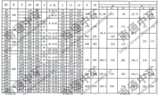 注:法蘭連接符合JB78-59《管路附件、法蘭連接尺寸》PNO.6Mpa規(guī)定,也可以按用戶要求采用其它標準。