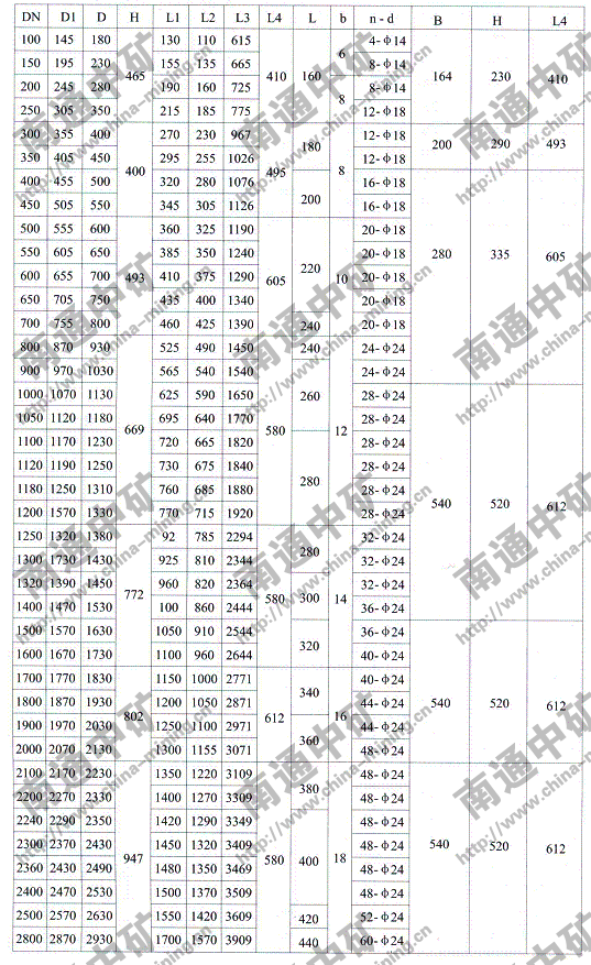 注:法蘭連接符合JB78-59《管路附件、法蘭連接尺寸》PNO.6Mpa規(guī)定,也可心按用戶要求采用其它標準。