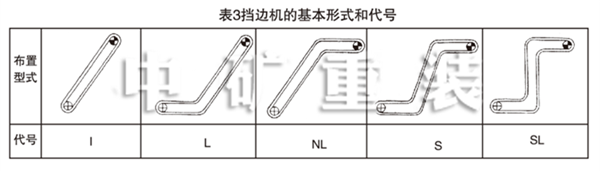DJ、JB波狀檔邊帶式輸送機的基本布置型式和代號見表3。這是五種基本的布置型式,實際上,由于檔邊機采用了波狀檔邊輸送帶和改向輪及改向輥組等過度裝置,檔邊機可以在同一垂直面內(nèi)多次彎曲,實現(xiàn)更為復雜的布置型式。