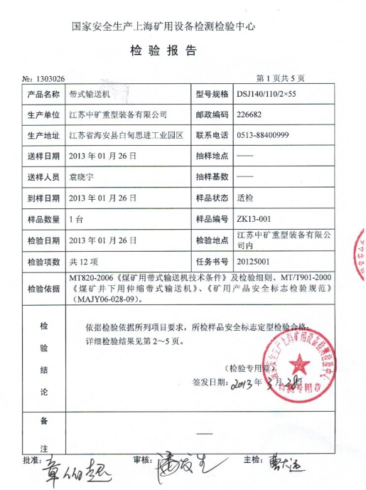 1.7.2 輸送機(jī)必須使用阻燃輸送帶,其安全性能應(yīng)符合MT668-1997《煤礦用阻燃鋼絲繩芯輸送帶技術(shù)條件》的規(guī)定。非金屬材料的零件其安全性能應(yīng)符合MT113-1995《煤礦井下用聚合物制品阻燃抗靜電性通用試驗(yàn)方法和判定規(guī)則》的規(guī)定;