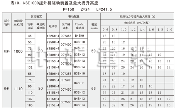 NSE50-NSE1000型提升機(jī)的常用提升量、提升高度分別見(jiàn)表1-10。