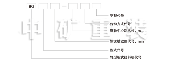 標(biāo)記示例:輸送槽寬度B為1000mm,形式為C型,鏈輪中心距L為9m,右傳動方式的通用固定式輕型板式給料機(jī)標(biāo)記為:板式給料機(jī) BQC1000-9 I JB/T3813—1999