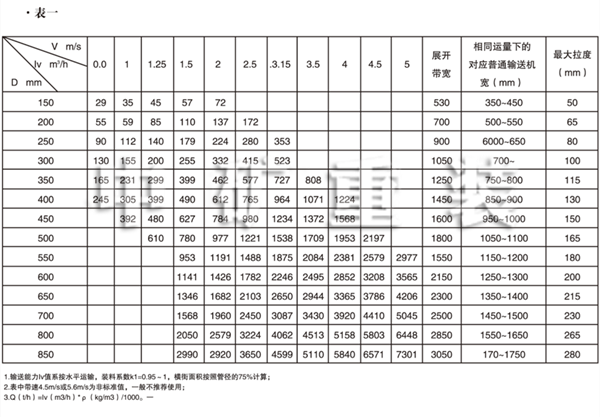 圓管帶式輸送機(jī)的輸送量,通常與帶寬是其管徑2.5至3倍的通用帶式輸送機(jī)相同。例如,一個管徑為300mm(12in)的圓管帶式輸送機(jī),與帶寬800mm(30in)、托輥槽角20、卸料角20的通用帶式輸送機(jī)的輸送量相同,而這臺圓管帶式輸送機(jī)的支架只有635mm(25in)寬,通用帶式輸送機(jī)的支架需要1050mm(41in)寬。在輸送機(jī)安裝空間受限制的情況下,如隧道中,采用圓管帶式輸送機(jī)可設(shè)計較小的隧道橫斷面。